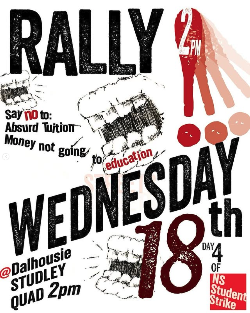 A student strike is a coordinated pause from regular academic activity to demonstrate the seriousness of student concerns; in this case, the grassroots group of organizers have called for students to abstain from attending classes, tutorials, labs, and submitting assignments. The Dalhousie Students 4 Strike group has indicated that during strike week, you can expect a range of programming and picketing activities. These actions are meant to be collective and visible displays of students’ organizing behind the demands of affordable tuition and divestment.